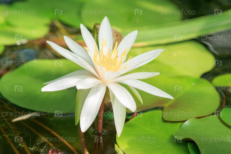 Цветок белой кувшинки в естественной среде обитания крупным планом