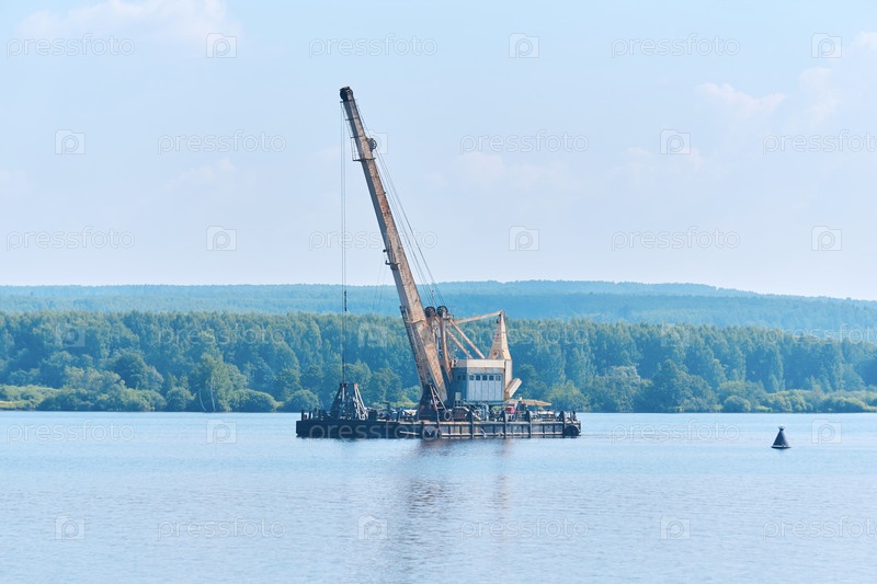 Земснаряд работает над углублением фарватера на реке