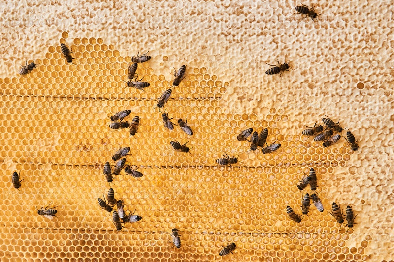Фон - соты, наполненные медом, по которым ползают пчелы