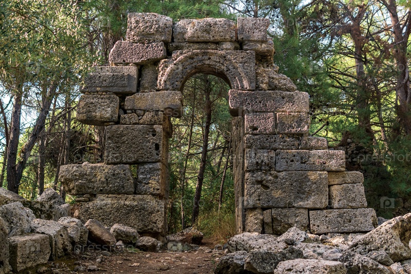 Руины античного здания среди леса в древнем городе Фаселис