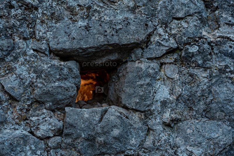 Амбразура в старой крепостной стене, сквозь которую пробивается свет