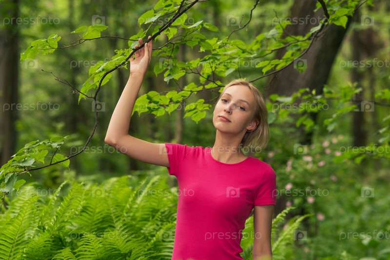 Девочка подросток гуляет по лесу