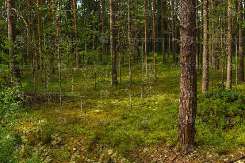 Природный ландшафт, сосновый бореальный лес с моховым подлеском, хвойная тайга