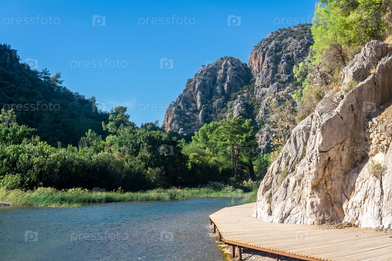 Экологическая тропа вдоль скалы на берегу реки в тропической горной местности