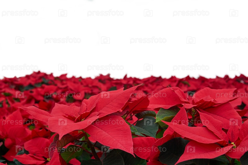Красные цветы пуансеттии, также известные как рождественская звезда или звезда Варфоломея, крупный план на белом фоне