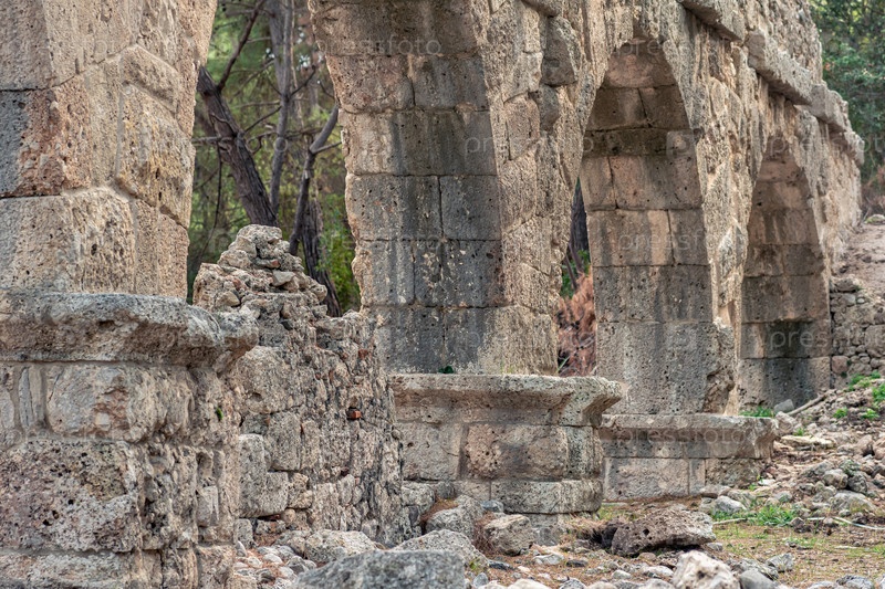 Руины римского акведука среди леса в древнем городе Фазелис