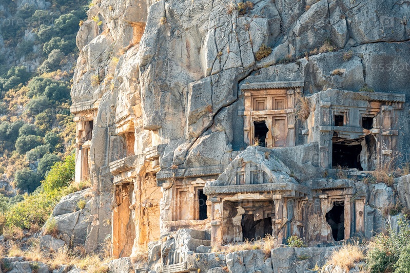 Древние гробницы и склепы, высеченные в скалах руин Миры