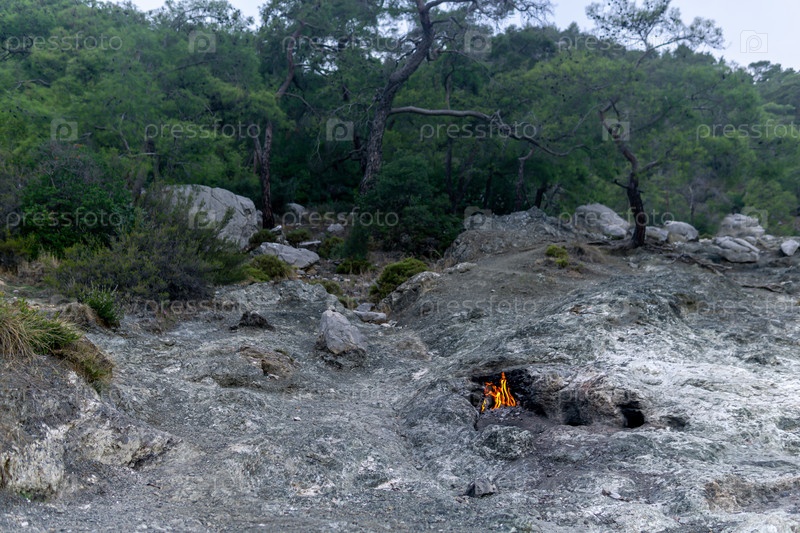 Постоянно горящий огонь на месте выброса природного газа на горе Химера (Янарташ), Турция