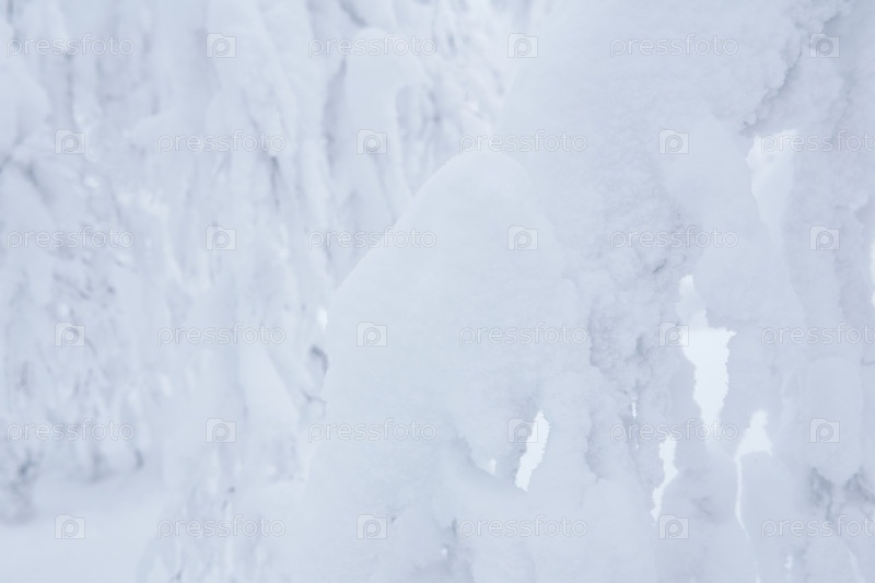Естественный зимний фон - заснеженные ветки деревьев после сильного снегопада