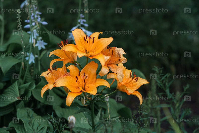 Оранжевые цветы лилии на естественном фоне сумерек