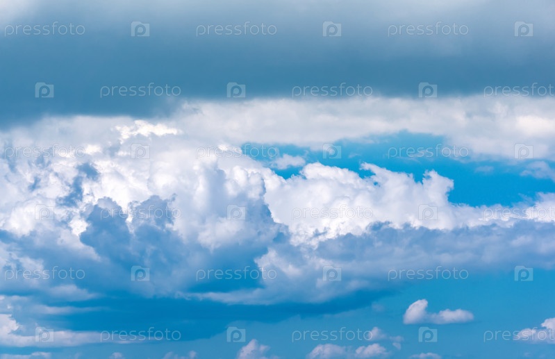 Фон - голубое небо с кучевыми облаками