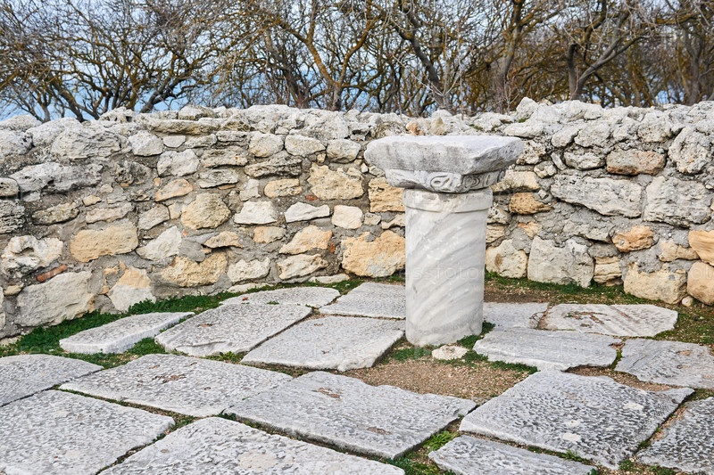 Христианский алтарь, сделанный из колонны языческого храма среди руин древней церкви
