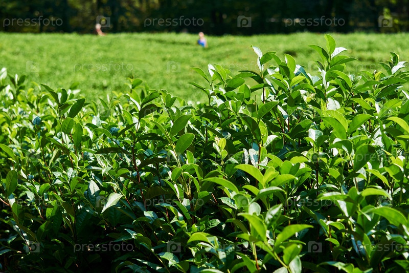 Чайная плантация - листья крупным планом и размытый фон