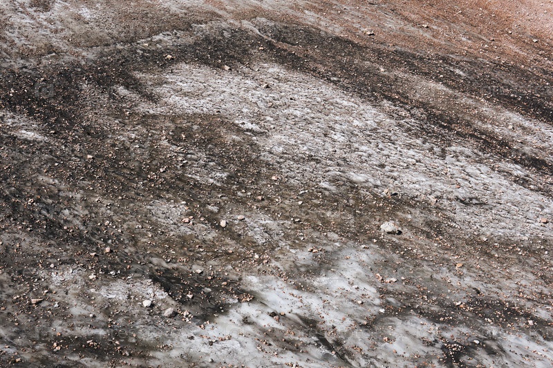 Поверхность тающего горного ледника, покрытая камнями и щебнем