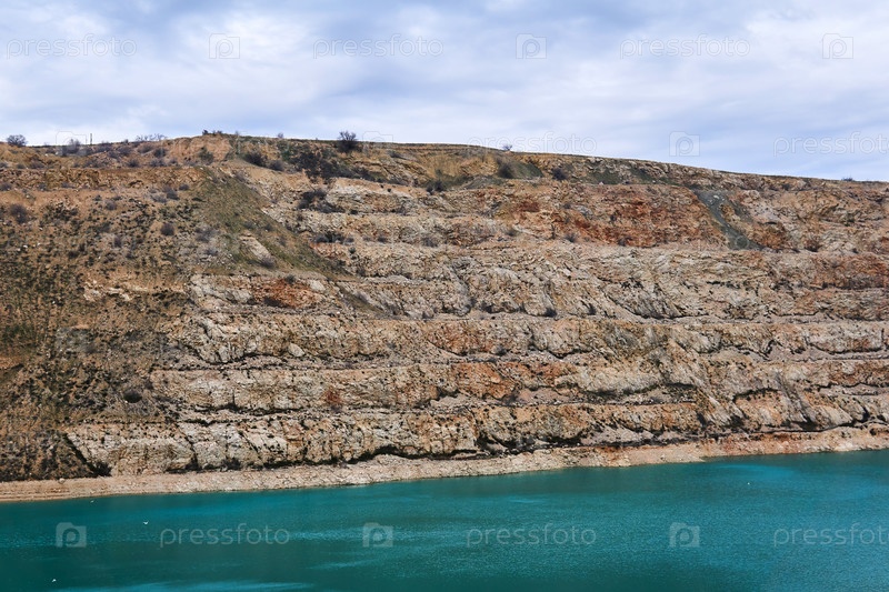 Часть старого известнякового карьера с голубым озером внизу