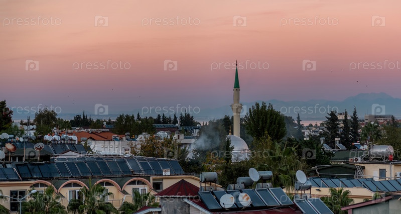 Вечерний вид на город Кемер, Турция