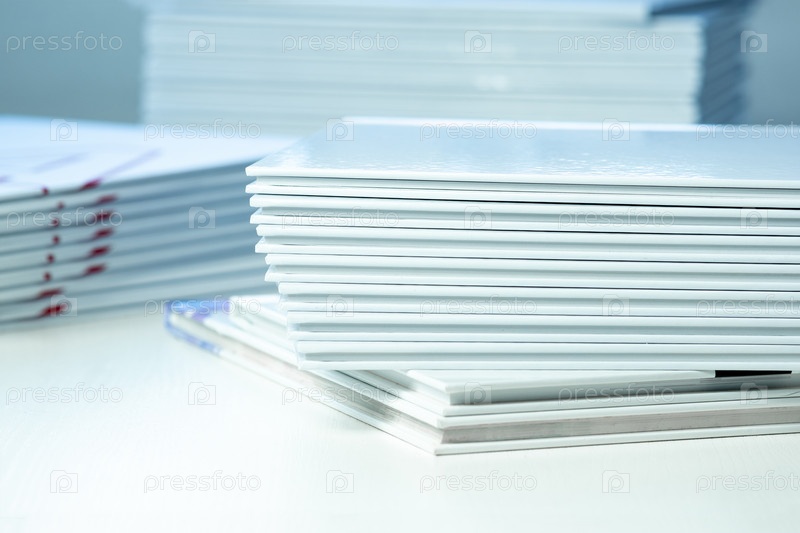 Стопка свежеотпечатанных фотокниг на столе крупным планом