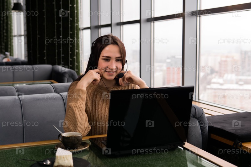 Девушка ведет какую-то онлайн-трансляцию из кофейни