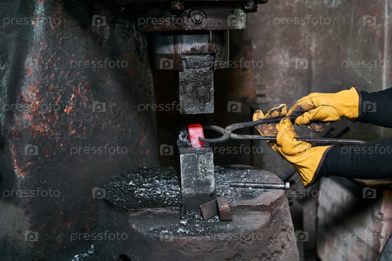 Женские руки обрабатывают раскаленную заготовку молотком