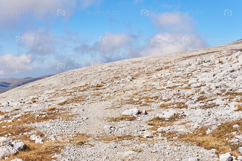 Склон альпийской горы, покрытый белыми камнями