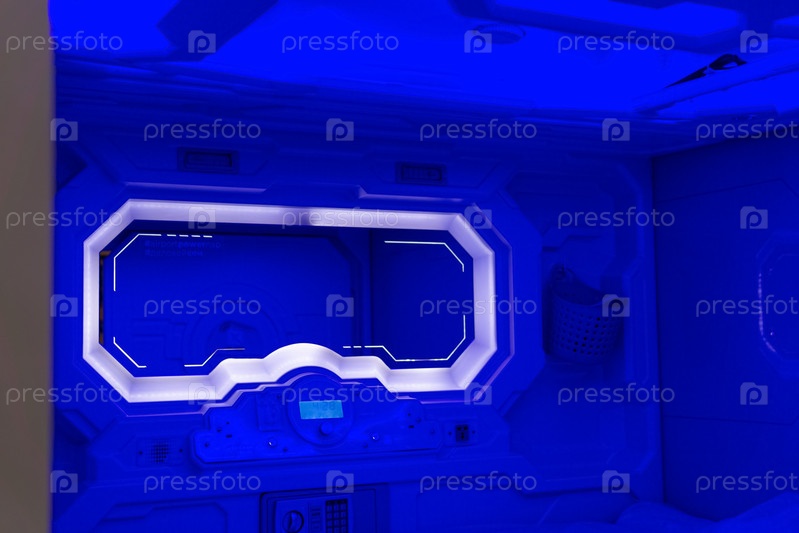 Интерьер камеры капсульного отеля в аэропорту Кольцово, Екатеринбург, Россия