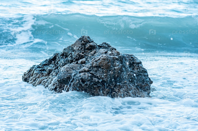 Прибрежная скала в прибое во время шторма
