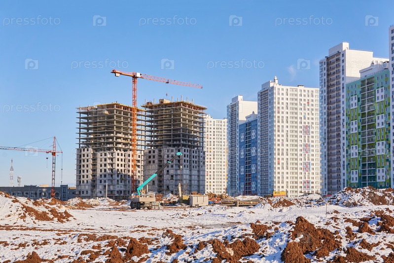 Вид на строительство комплекса многоэтажных жилых домов - строящихся и готовых домов