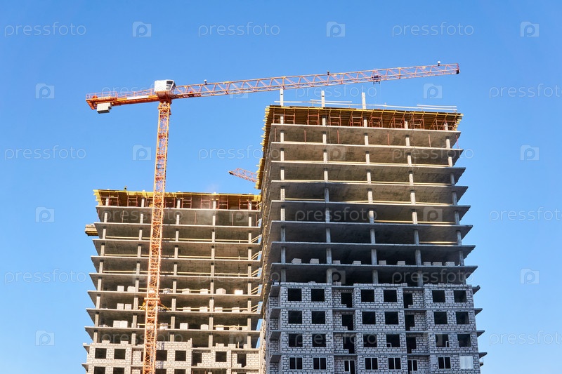 Строящееся многоэтажное здание, вид на небо