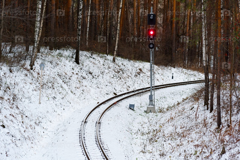 Узкоколейная железная дорога в зимнем лесу