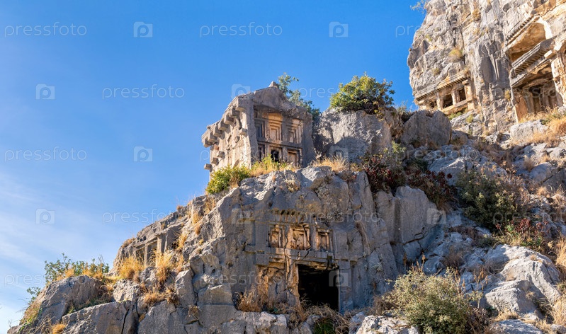 Древние гробницы и склепы, высеченные в скалах руин Миры