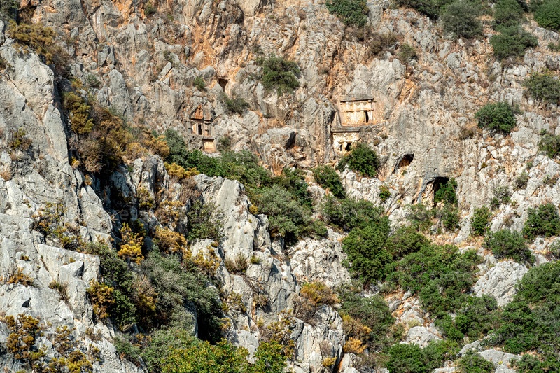 Скальный некрополь с каменными гробницами в Мирах Ликийских (Демре, Турция)
