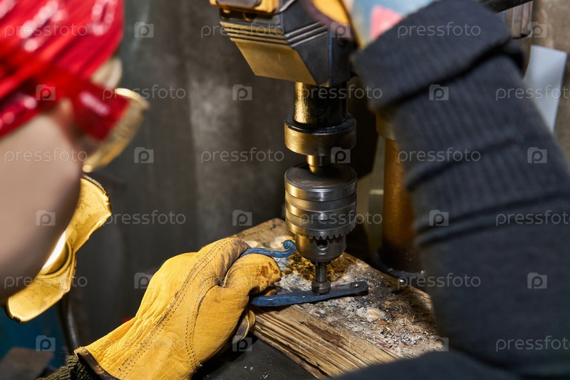 Женщина-ремесленник работает на сверлильном станке с зенковкой крупным планом