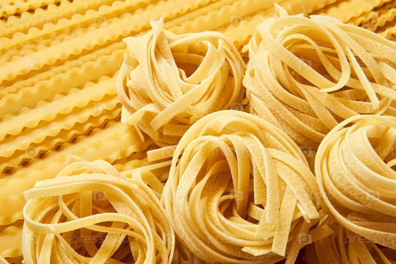Фон из сушеных макарон, тальятелле и мафальдини