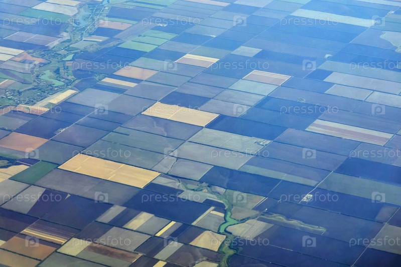 Вид с самолета на сельскохозяйственный регион с красочными полями