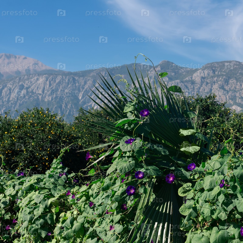 Пышная тропическая растительность на краю сада в горной долине