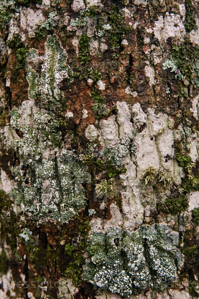 Различные мхи и лишайники на коре деревьев
