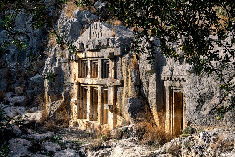 Древние гробницы и склепы, высеченные в скалах руин Миры