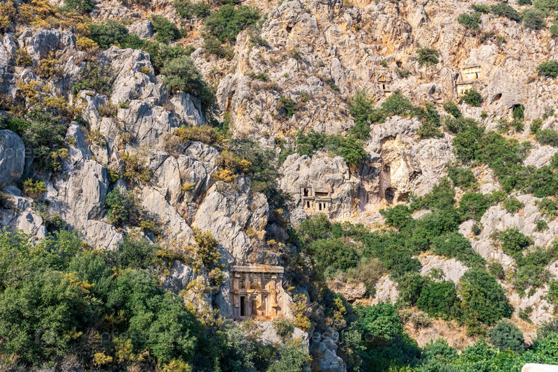 Скальный некрополь с каменными гробницами в Мирах Ликийских (Демре, Турция)