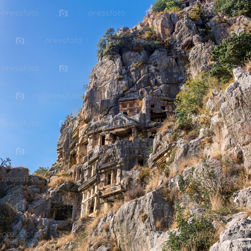 Знаменитый комплекс скальных гробниц в руинах Мир Ликийских (ныне Демре, Турция)