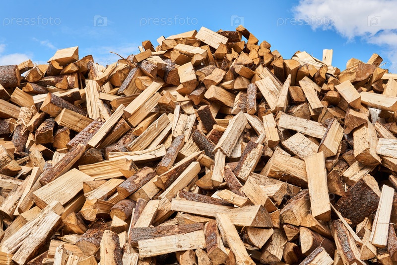 Огромная куча дров на фоне неба