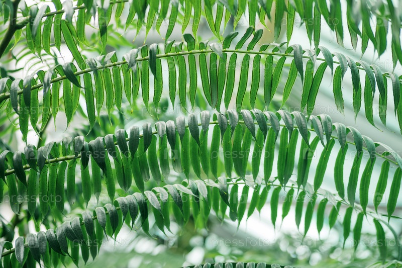 Частично размытый цветочный фон с листьями папоротника на переднем плане