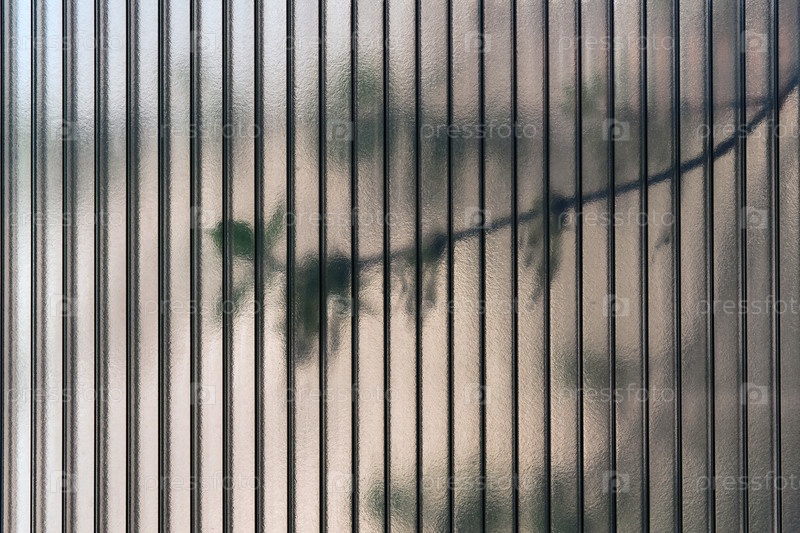 Листья живых деревьев просвечивают сквозь полутемный лист поликарбоната