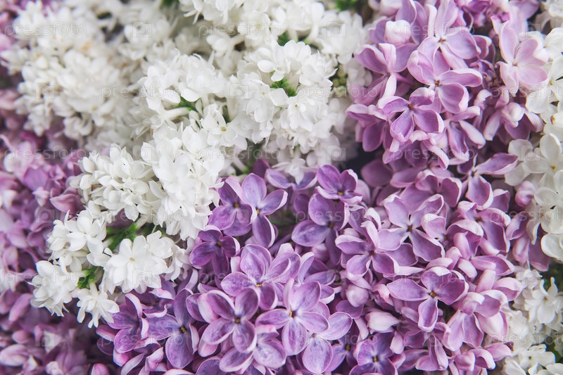 Естественный фон из белой и фиолетовой цветущей сирени крупным планом