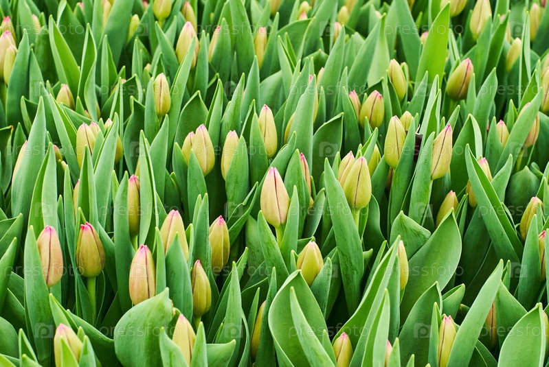 Цветочный фон - поле нераскрывшихся тюльпанов