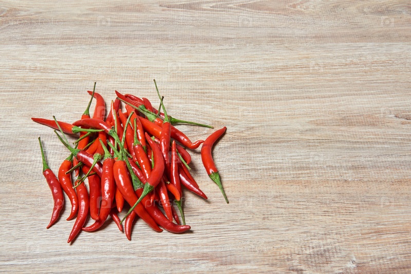 Связка стручков красного острого перца на деревянной поверхности