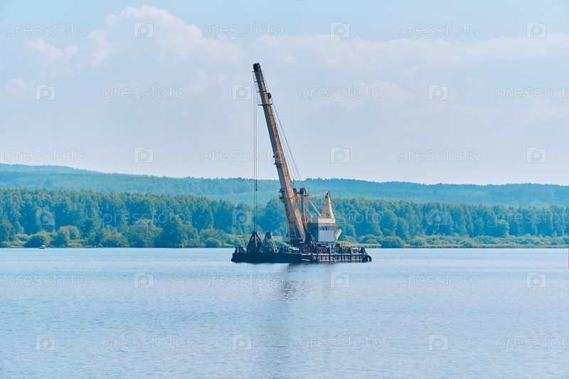 Земснаряд работает над углублением фарватера на реке