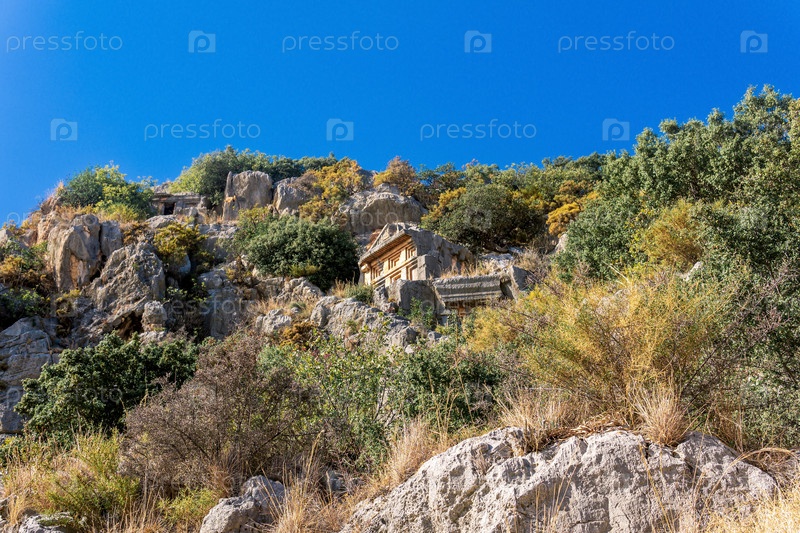 Античные древнегреческие склепы на склоне горы в Мире (ныне Демре, Турция)