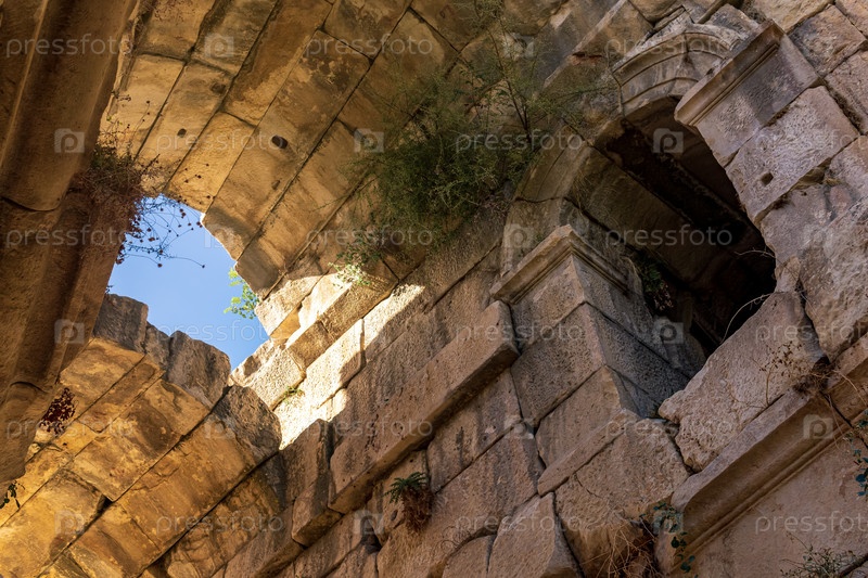 Вид под арочными сводами древних руин, заросших растительностью