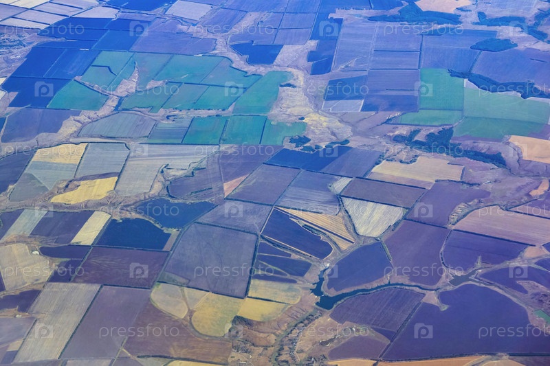 Вид с самолета на сельскохозяйственный регион с красочными полями