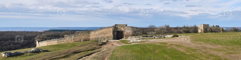Руины средневековой крепостной башни Чуфут-Кале, Крым